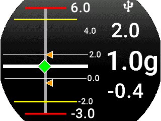 Hlavní stránka s nastavením plného rozsahu na +6/-3 G