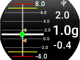 Hlavní stránka s nastavením plného rozsahu na +8/-4 G