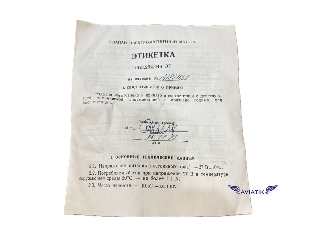 MKT-175 Elektromagnetický ventil.