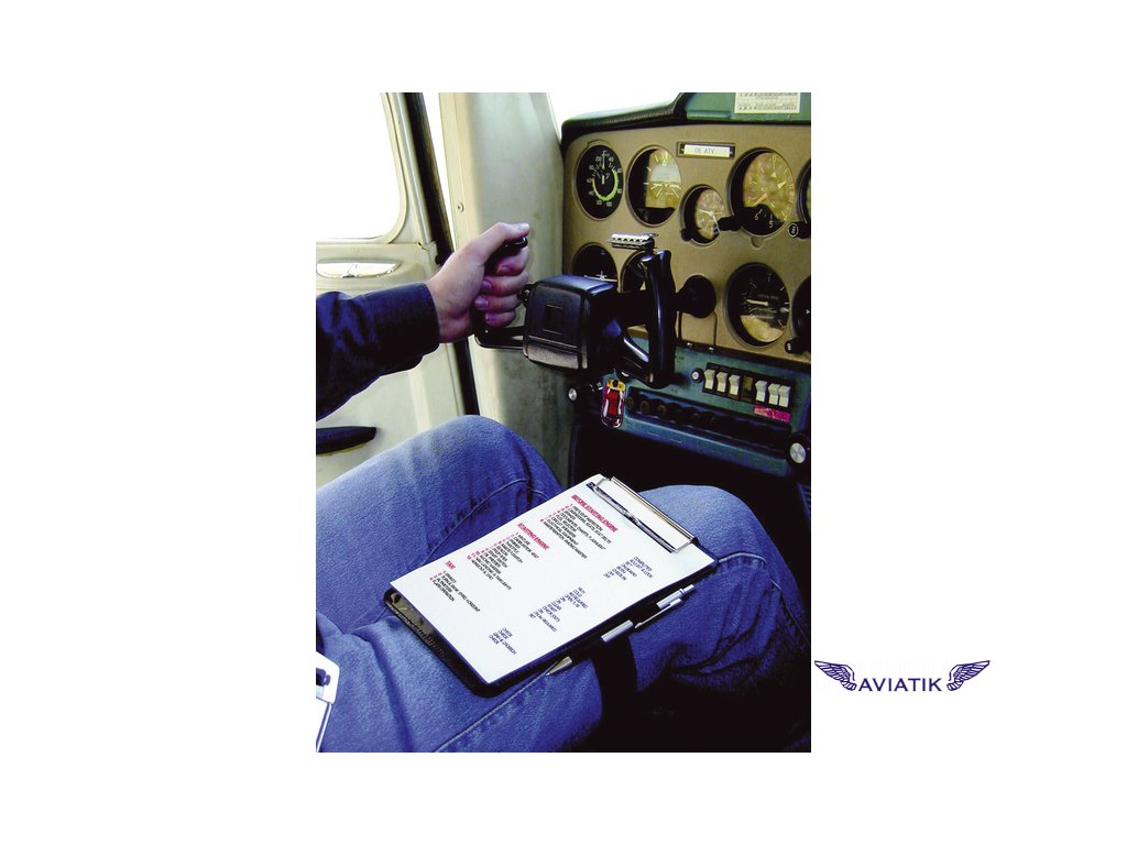 Nákoleník vyrobený z leštěného hliníku. Pevný povrch na psaní, rychlý přístup k VFR informacím.