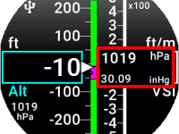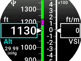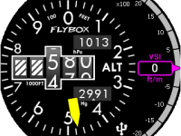 Hlavní obrazovka s ukazateli výškoměru a VSI