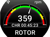 Hlavní obrazovka ROTOR RPM s indikací v absolutní hodnotě