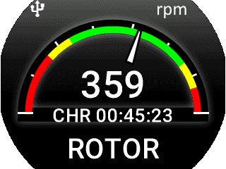 Hlavní obrazovka ROTOR RPM s indikací v absolutní hodnotě