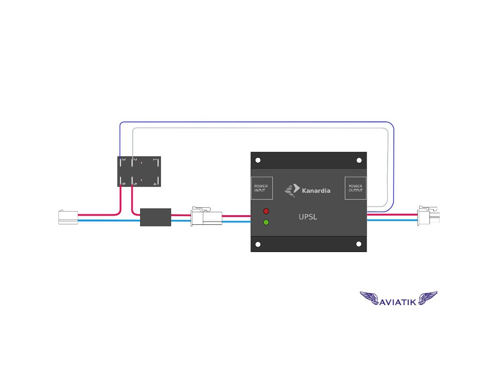 - Režim nečinnosti – Spínač je nastaven do polohy „aktivní“, vnitřní baterie je plně nabitá a úroveň vstupního napětí je vyšší než 11,5 V. Elektronika přepíná vstupní napětí přímo na výstup a monitoruje úroveň napětí vnitřní baterie.